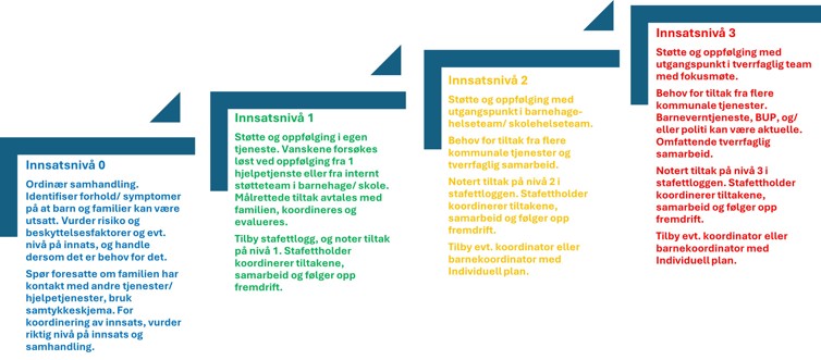 Noter tiltak på nivå 2 i stafettloggen. Stafettholder koordinerer tiltakene, samarbeid og følger opp fremdrift.